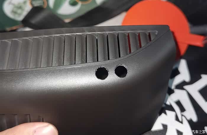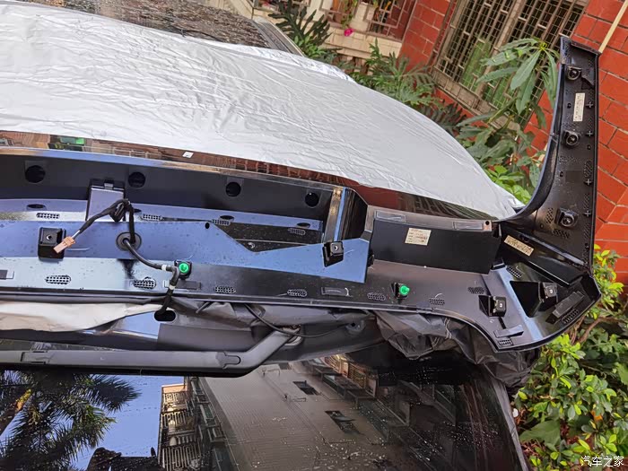 7字塑料板非常紧,先从7字底部用力向上扳开第一扣,再用撬棍撬开二,三扣。 左右两边共6扣都取开后,用力上推尾翼就会整体拆出
