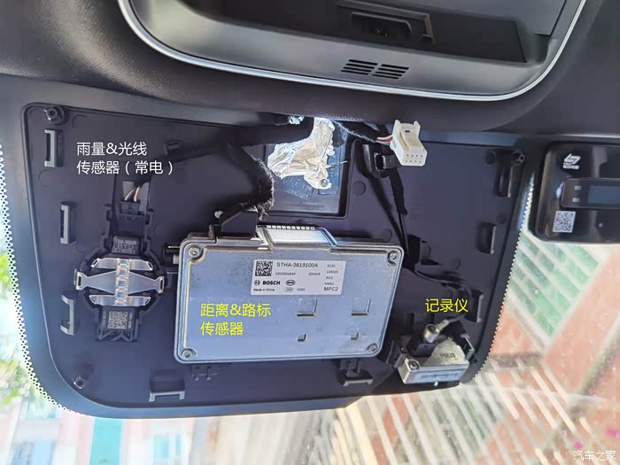 上面雨量传感器带常电是因为车子具有熄火后下雨自动关窗功能,防止忘记关窗交船税,想装停车监控可以这里取电。