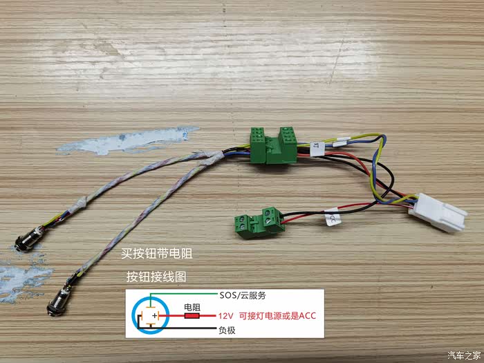 这里借用一下车友的图,其实按钮灯电源可以不用接灯电源专用线(接它的效果是开门就亮灯),我最后接的ACC,效果是按启动键才亮灯