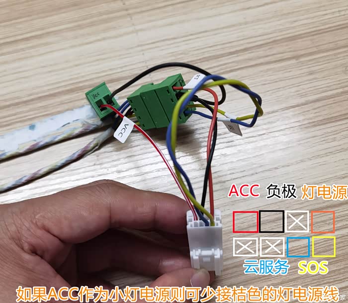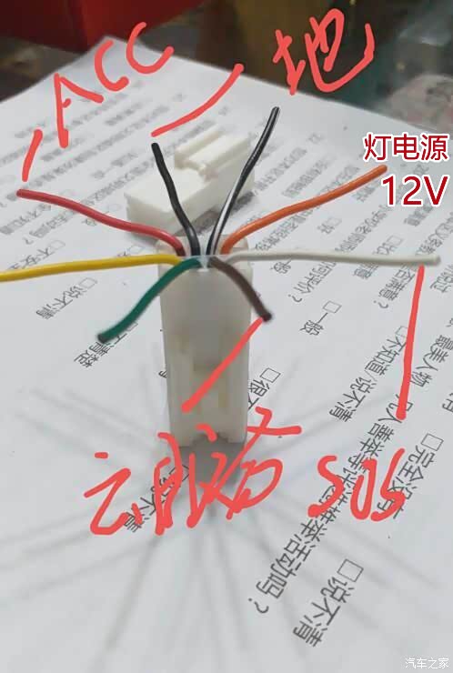 这个接头最多只用到五根线,如果用ACC做为灯电源就只要接四根线(买头时出点钱让卖家定制线束,无工具太难了)