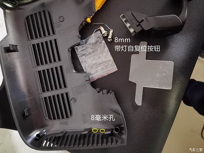 我采用8毫米按钮,在底部实体部分开孔(散热口不平整,受力不均匀,不好下手)