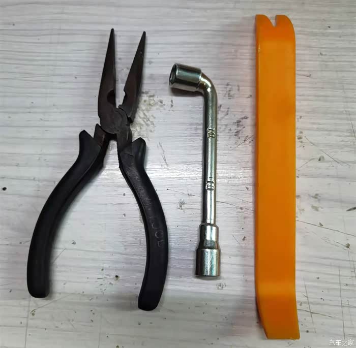 拆后视镜顶罩,盲拆不行,手拉疼都不动一下。我通过比对几个车友发的照片加上用灯仔细观察过,需要自制一个小工具,能让它正确脱钩,这是用钳子弯折一个小螺丝刀变成这样。