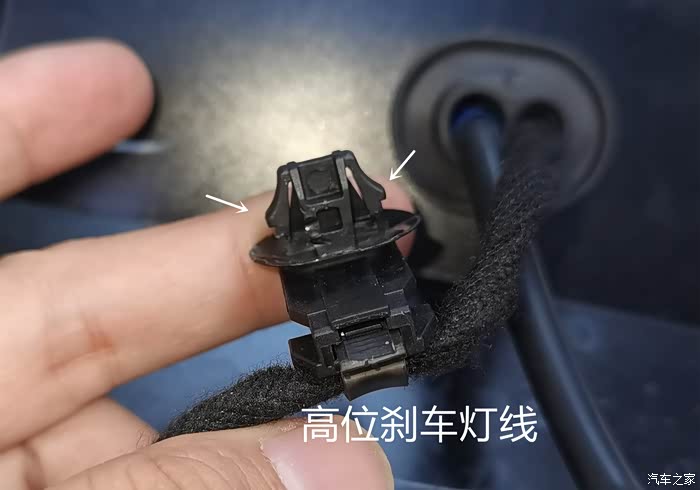 取红圈处的线头,卡扣很难取,不想拉断就左边用撬棍从左边方口进去按压,右边用右手按压取扣,看下图取出的卡扣可以看到其结构,我是试了几次两边按压取出来,你们也可以尝试一下只右手按压后,左手用力把卡扣推向右边拉出。