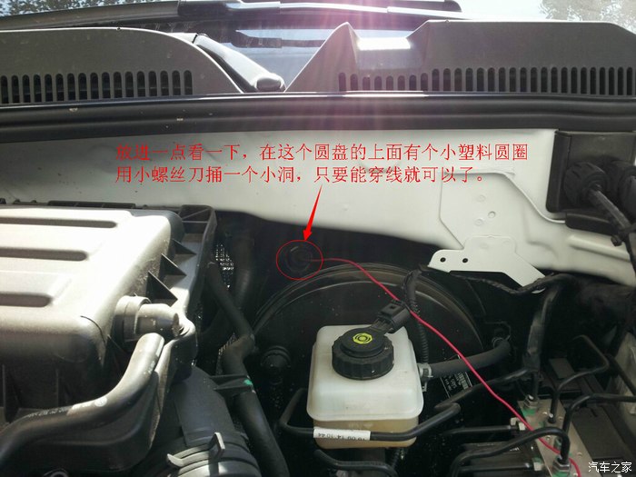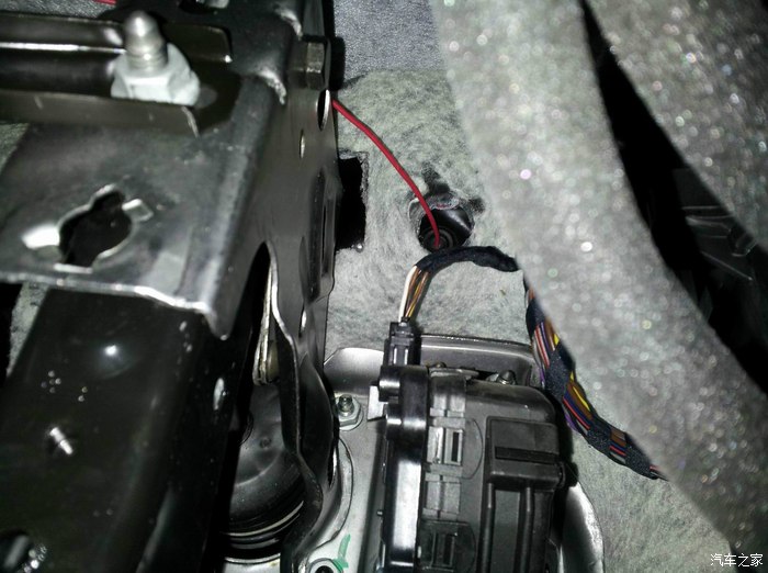 接下来开始安装,首先考虑的是走线的问题,因为线走的不好,可能不够长,那就白忙活了;这是我忙活了2小时才发现的,又重走了一次,白忙活了2小时。。。下图是走到驾使室的穿线位置,这个最重要了,因为新手都不知道怎么走。(具体的穿点位置会在后面的图片详细介绍)