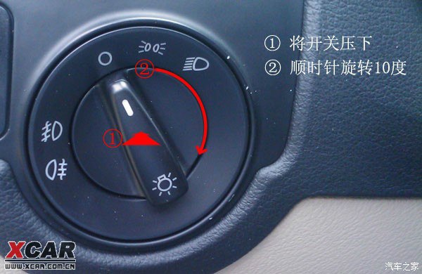 8、装好后,在开启示宽灯或近光灯的时候,往外拔一格,前雾灯就会亮,再拔一格,后雾灯也会亮起;但仪表盘上没有前雾灯指示图标的。