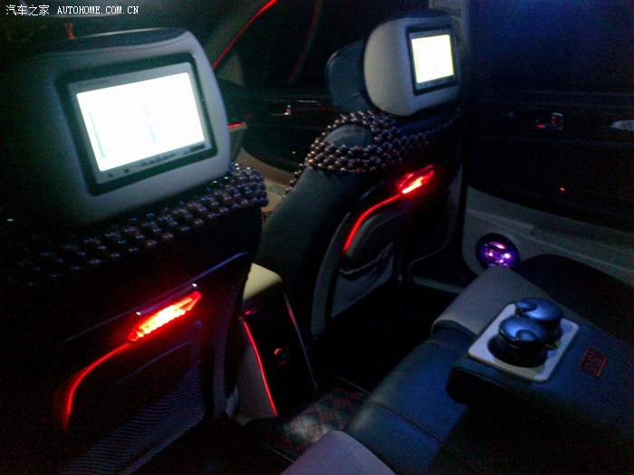 10年改装的内饰。重点改的正负驾驶电加热和按摩座椅,自己动手改的成本750元。10档滚轮。按摩座椅成本2个600元。把按摩垫拆了。把按摩电机装在椅子里。改的飞机式挡把,自己包的真皮。座椅包的双色真皮座椅。成本2600元。全车大包围PU材质,带红线刺绣的。定制的。成本600元。小叶憻的夏天凉席。用了3年了。成本6000元。但保值。现在应该在10000元左右。方向盘包的真皮。中央扶手也包的双色真皮。都是我自己设计的。音响,自己动手加的音响罩。没有花钱。但做门里隔音。换大功率的喇叭。花了3200元。07年换的DVD和倒车视频5300元,加后面的2个DVD2000元。全车隔音。换换装喇叭3200元,加低音炮700元。