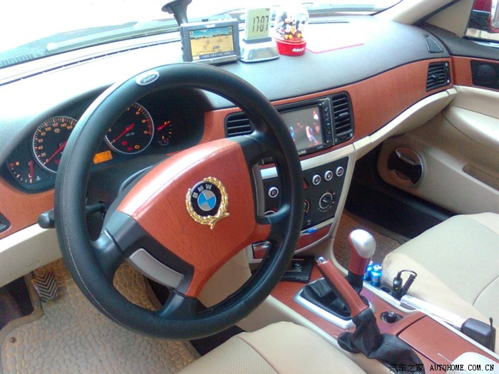 07年跑婚庆改装宝马标。内饰改装的木纹贴纸,自己动手改的。成本10元。08年就摘除了。大家不要笑我俗。都是婚庆要求的。