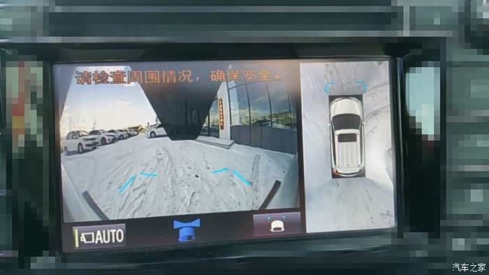(我可没笑话谁,只是对于后风挡处经常看到的张贴新手女司机的话题进行一下调侃))当车速在低于15KM以下时全景会在多媒体显示屏中自动显示。显示分为一个前摄头图和一个360度的立体画面