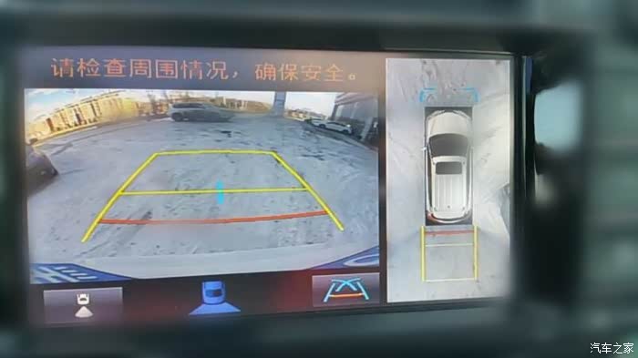 一路奔波后准备停车时,全景画面再次显示,给予我们安全行车的后方保障。