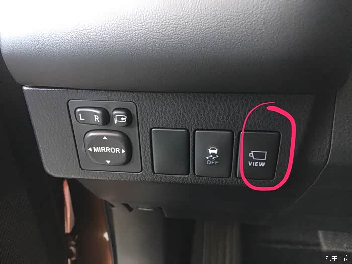 位于方向盘左侧的有一个全景摄像头的切换按键。辅助我们切换为左右两侧的摄像头,画面更大,更清晰,不允许我们