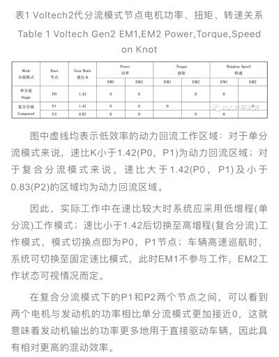 刚刚和那个车友讨论了一下,谈到发电的效率问题,为什么要在这里提到功率分流的基本原理,因为这个基本原理,直接关系到发电的效率对系统效率的影响,因为功率分流的原因,实际发电的功率正常情况下最大也不超过百分之二十(只针对这个复合功率分流,相关论文我以前发过),也就是说如果发电的效率是百分之71,电机的效率也是百分之71,两者综合效率在百分之50的情况下,从内燃机到车轮的综合效率依然有百分之90,而对于像本田那样的P13架构,即使两者都达到百分之95,纯串联模式下,综合效率也只有百分之90,关键在于前者是小部分功率通过发电机电机,后者是全部功率,这也是为什么分流模式效率必然高于串联模式的根本原因,而无论分流还是串联,其基本目标都是一致的,为了实现内燃机与车轮速度的解耦,让内燃机尽量工作在效率最高转速区间,前面提到的发电机和电动机同时工作在百分之95效率基本是目前工程能力的极限了,而百分之71,是一个轻松就能达到的目标,甚至可以说目前技术水平的下限也远比这个高。至于本田的P13架构为什么实际油耗也很优秀,不是因为P13架构串联模式比分流架构效率高,是因为P13架构可以通过离合器实现内燃机到车轮的动力直驱,也就是内燃机动力全部直接输出到车轮,而复合功率分流的V6,同样也可以通过行星轮齿圈的制动器,实现内燃机直接驱动车轮(这一点,没有相关离合器或者制动器的丰田THS是做不到的,这也是为什么丰田THS高速油耗偏高的根本原因)。V6靠一个低效(相对丰田本田的ATK)普通内燃机能实现和他们基本相当的油耗(动力还更优秀),靠的就是复合功率分流的高效
