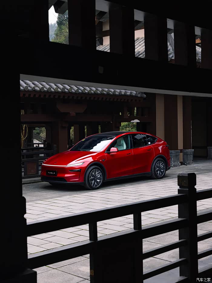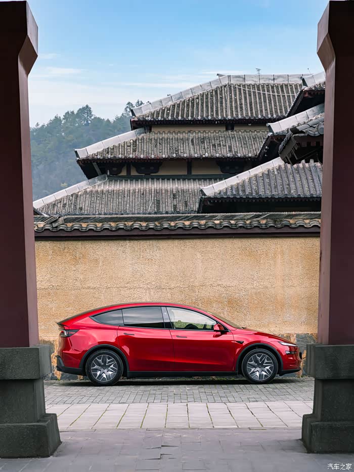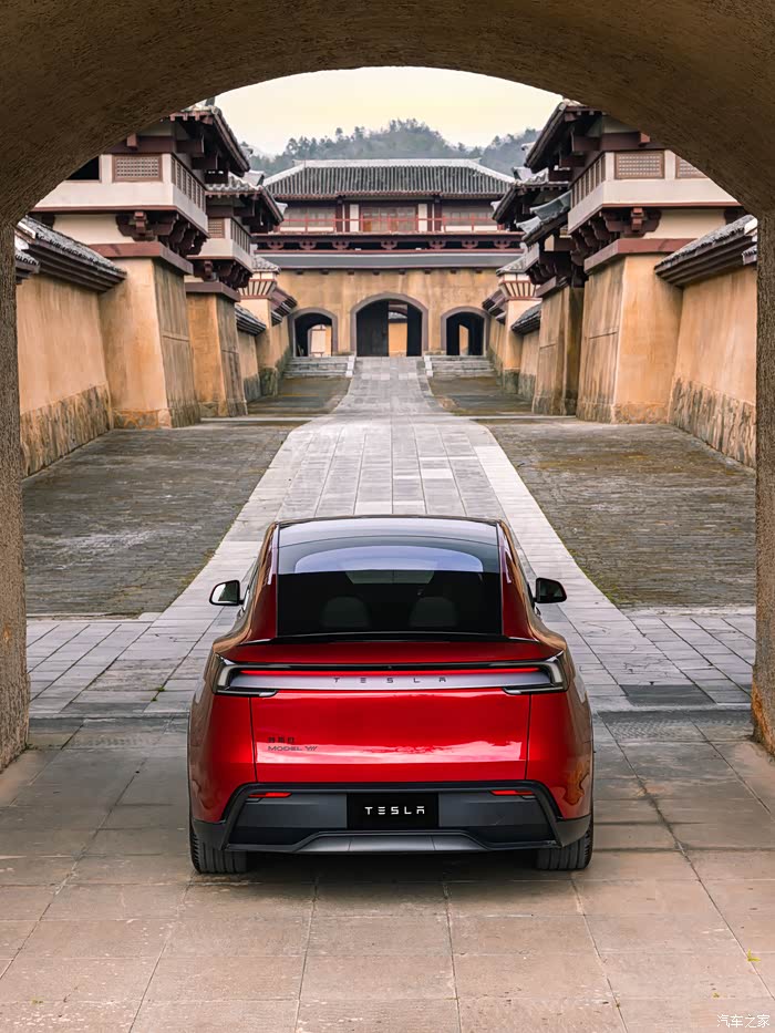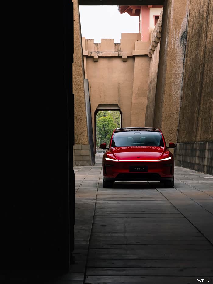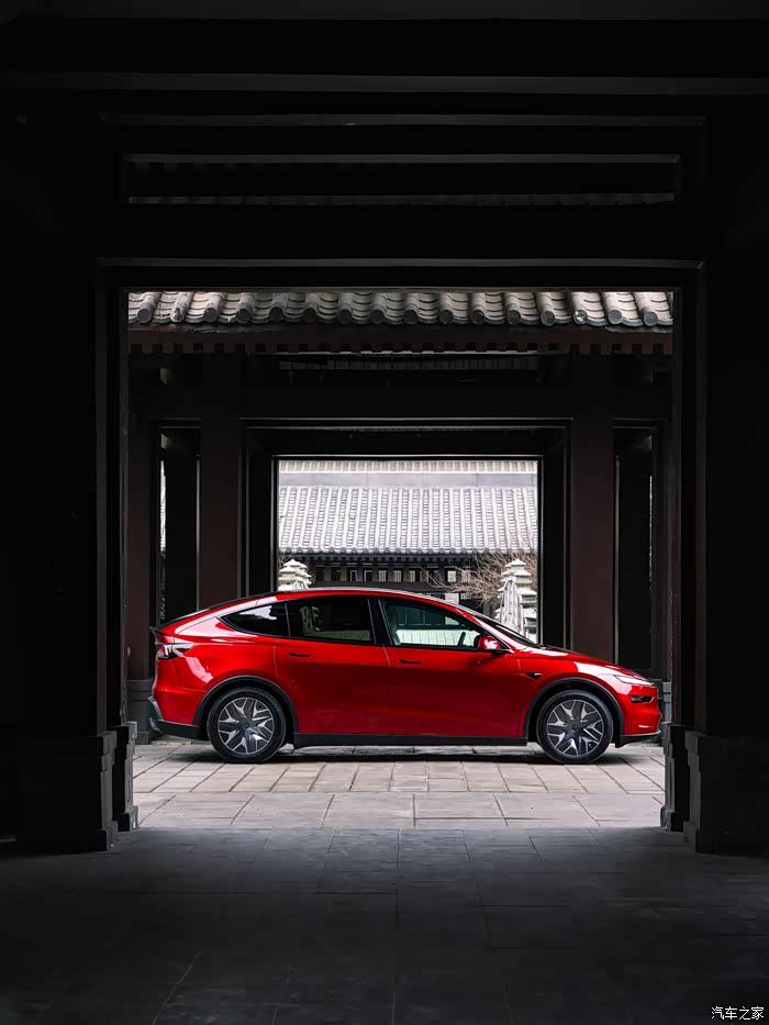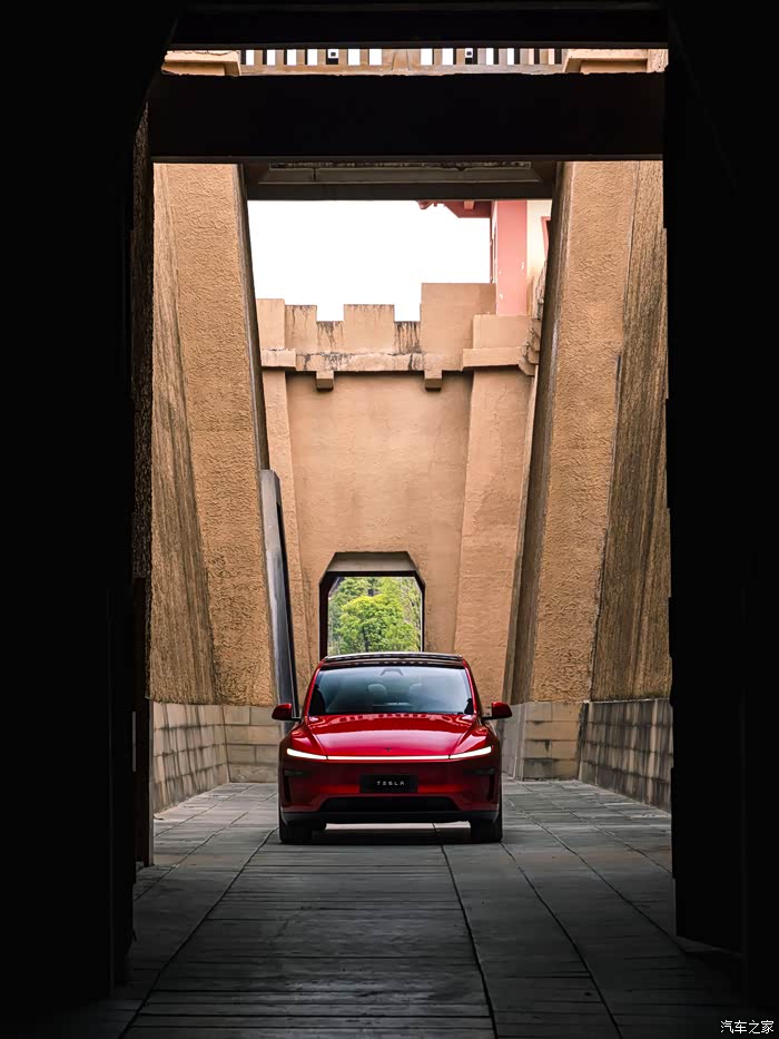 4、最后卡古建筑门洞的框,让车从明暗交界里开出来,既有古今反差又显高级