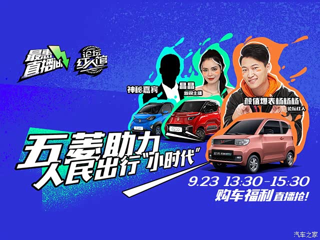 9月23日下午13:30-15:30,锁定汽车之家最惠直播间,千元大礼包和iapd神秘大奖等你来领!尤其是打算购买宏光MINI EV、宝骏E100和宝骏E200的小伙伴,一定要关注本场直播哦~