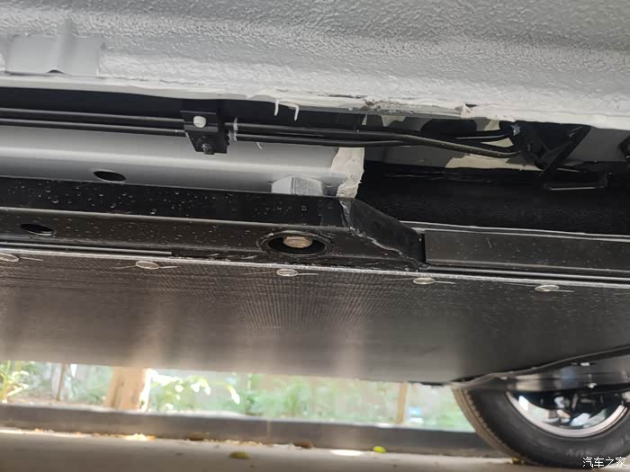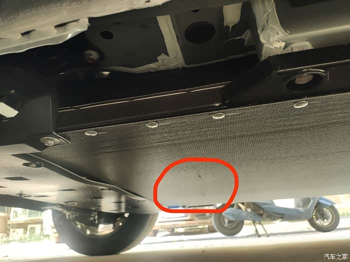 验车的时候没让上架,就让开到一个有一排台阶的地方看了下底盘,我随手拍了两张完整的照片。下图红圈的地方有一点感觉颜色略深,明天挂牌照的时候一定上架看看