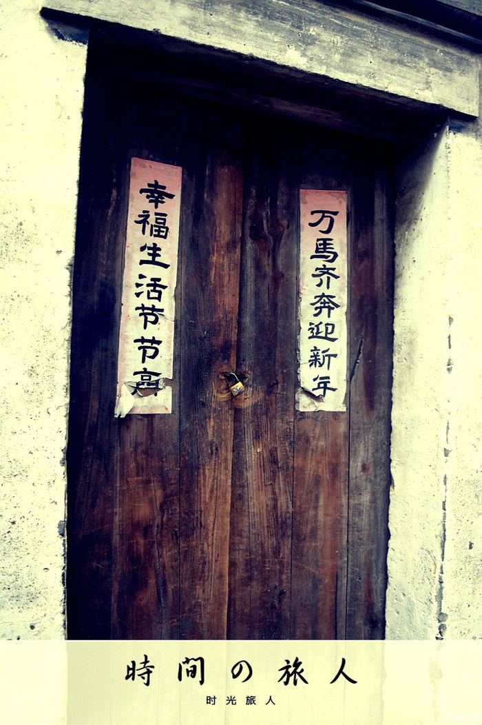 老式农家木门,破旧的桃符(对联),地道农家范儿。