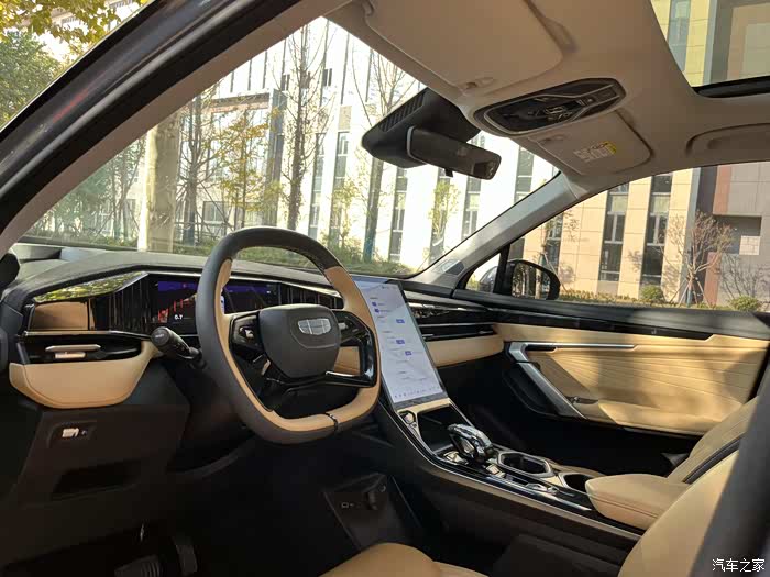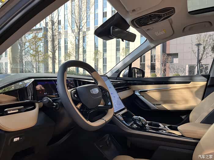 车内的做工虽算不上豪华但算是很细腻了,科技感拉满,两块屏汇聚车内的各项功能,中间这块中控大屏,看这超大,功能挺齐全,并且还支撑智能语音,车内基本上的功能都可以在大屏上控制,一句“你好,吉利”就能唤醒,车机系统也很顺滑,没有出现过卡顿的情况,车机app也很丰富,听歌,看视频都可以,跟平板一样好用。