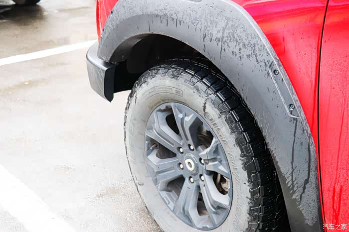 265的AT3越野轮胎,胎槽深,排水好,抓地力也很牢。