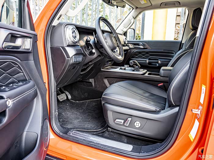 车也开了好几天了说一说先从外观开始说一说吧坦克前脸采用了大量平直线条前后都加上粗犷而又突出的前后防护杠,给人一种十足的越野劲头,而且坦克还用了不少的经典设计元素,前脸方正的中网格栅与两侧圆形复古大灯以及转角日行灯等都显得非常经典,尾部采用了全尺寸备胎式胎悬挂。 看上去更加有硬派越野车味道。当我把它开上街上的时候那个回头率绝对的杠杠的。熟悉的人都会过来问一问这是啥车,夸奖二句那时候会得到很满足也很自豪。内饰采用了大量的皮质包裹豪华感十足。
