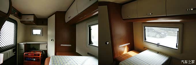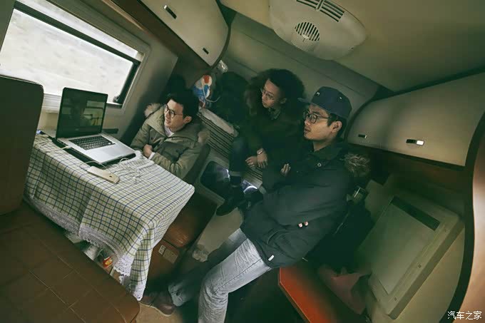 拍两张收拾干净的房车给你们看看。因为后来它就已经乱七八糟了。房车后面其实有一张床,本可以舒服地躺着休息,但实际情况是房车行驶过程中没人敢在后面坐。
