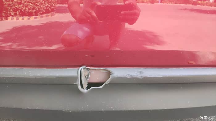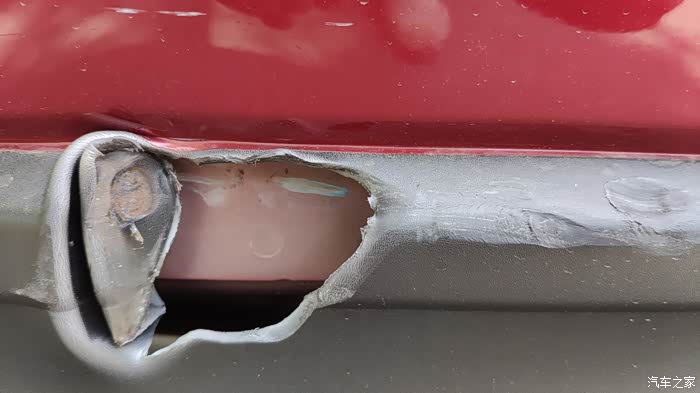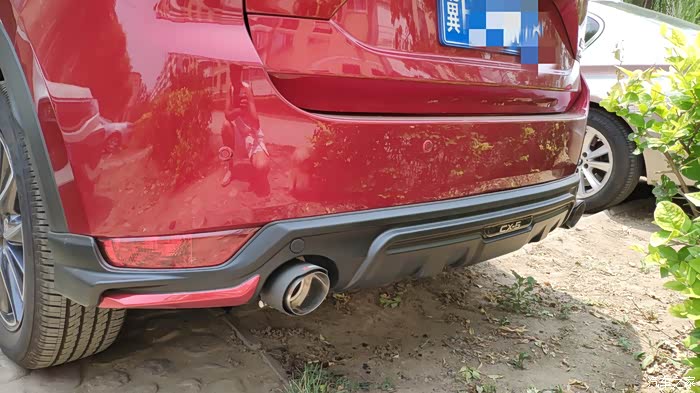 好啦,下面上图。给同样部位受损的车友一个解决方案。对了提醒一下,cx5原车保险杠4s要1750,红色喷漆1500,人工另算,想换杠的慎重考虑。