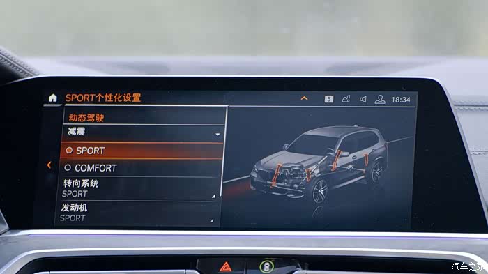 Sport & Sport Individual:这个模式比较传统,因为多了双轴空气悬架,所以在Individual下可以调节动力输出灵敏度、转向力度、悬架软硬。