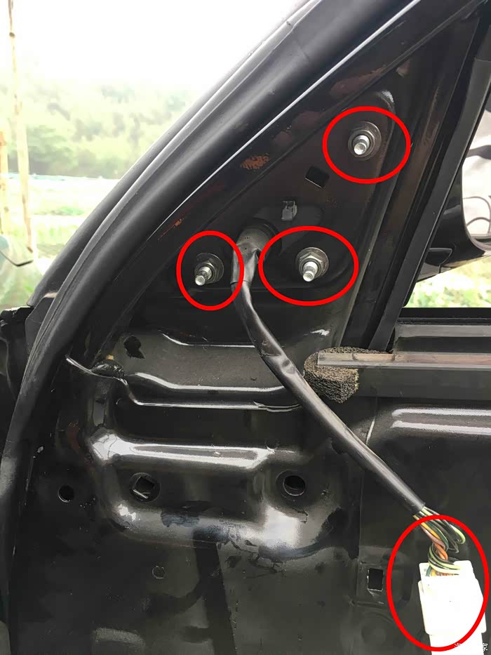 拆下这个3角盖子,卸下后视镜3个螺丝和线路