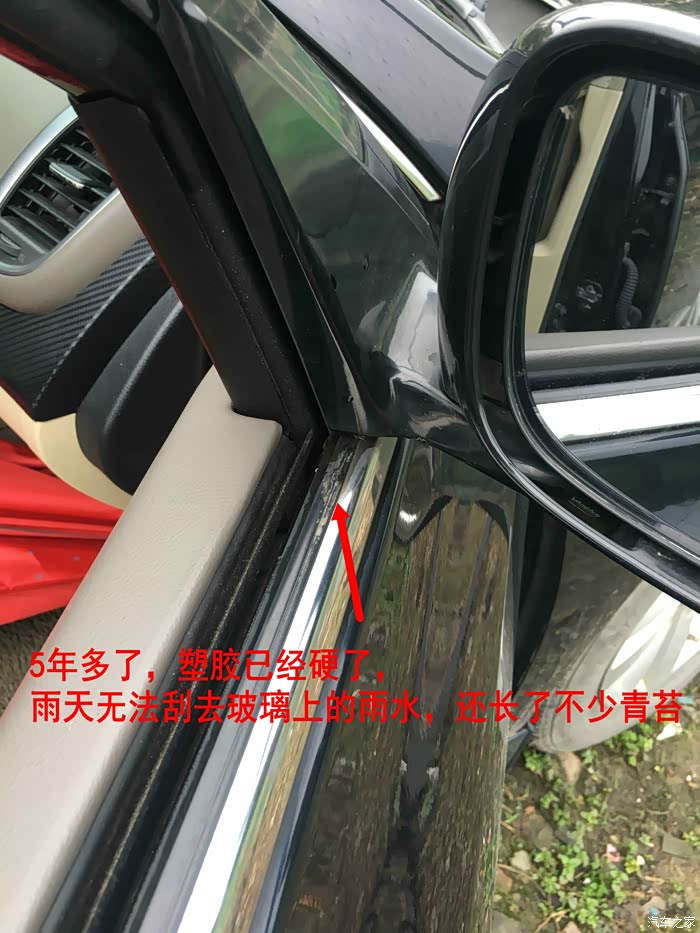 )很少清洗车子。经过雨水的滋润,原本黑色的塑胶已经泛白部分长了绿苔