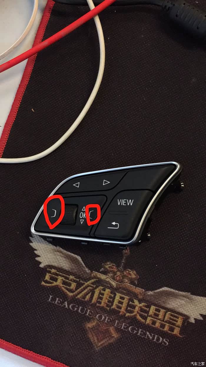 支持液晶仪表的话需要方向盘上的按键有红线标出的两个箭头,跟MMI旋钮两边的按键类似,而且换的话要左右一起换,否则无效。