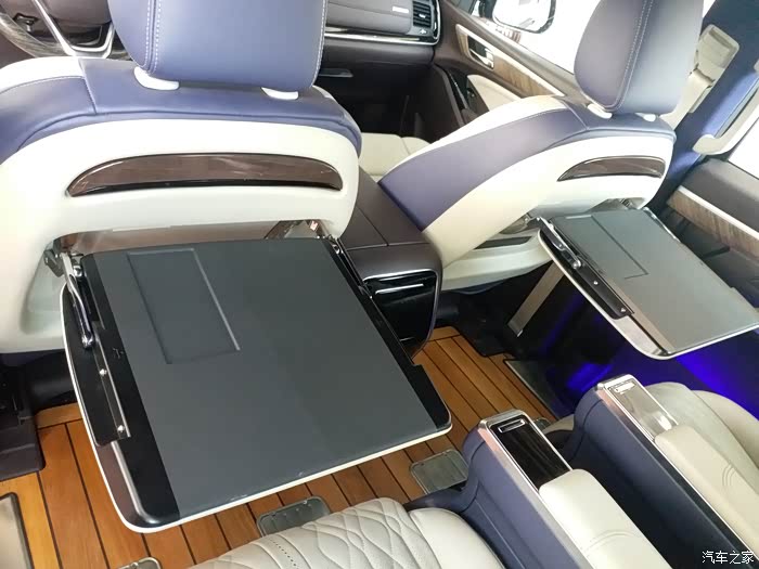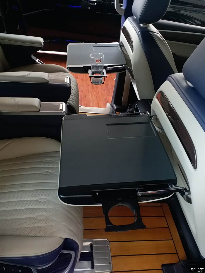原车第一排座椅不带靠背桌,改装后带靠背桌。