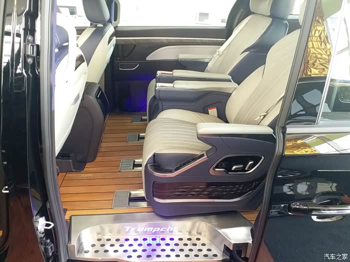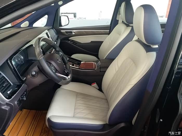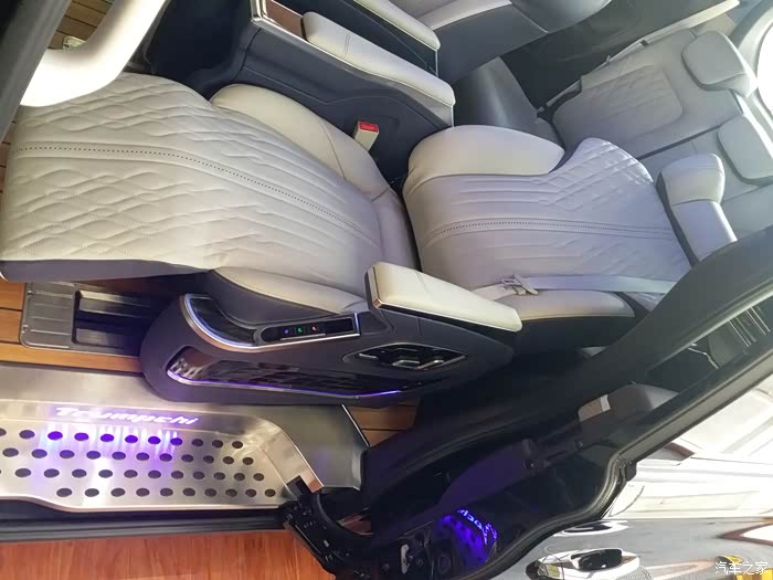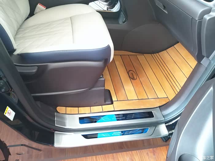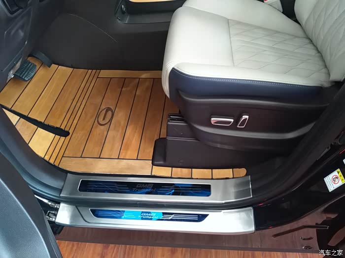 前排改了,概念定制版真皮座椅,带传祺LOGO柚木地板脚垫,前门迎宾金属踏板,升级主驾驶座椅电动前后调节与电动靠背。
