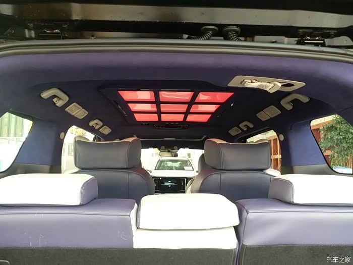 顶棚可以升级成两种风格或多个风格的版,此车改成七彩炫九宫格氛围顶。