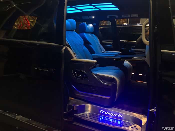 重头戏,传祺M8“豪华王座”,闪闪发亮的氛围灯质感,各种高科技功能一应俱全。乘坐体验与视觉美感和谐相处,包裹航空座椅的材质,奢华感满分。