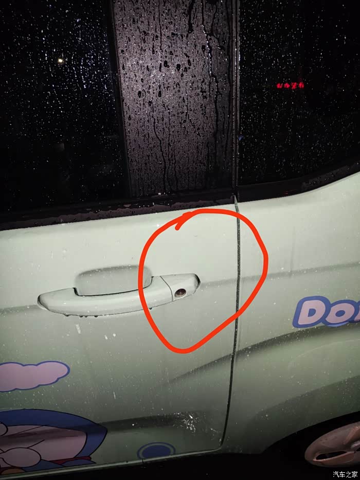 今天我这边大雨,我车没电了,回家后放楼下充电,插好充电器后,打开车门拿东西时,手臂突然一阵麻,当时整个人都不好了,然后用手指轻轻的去触一下这个位置,发现这个位置明显漏点,其余位置都没事,就这个一小块地方,驾驶座这边