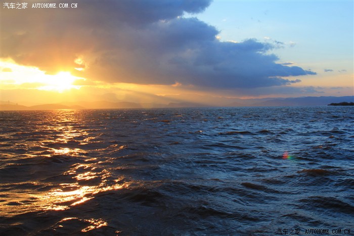 大理洱海日出,云蒸霞蔚,光芒万丈。