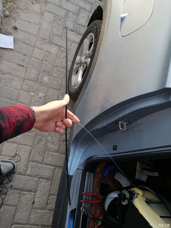 座椅后有这样一个位置,从中间穿过去,把刹车线从里面整个抽过去