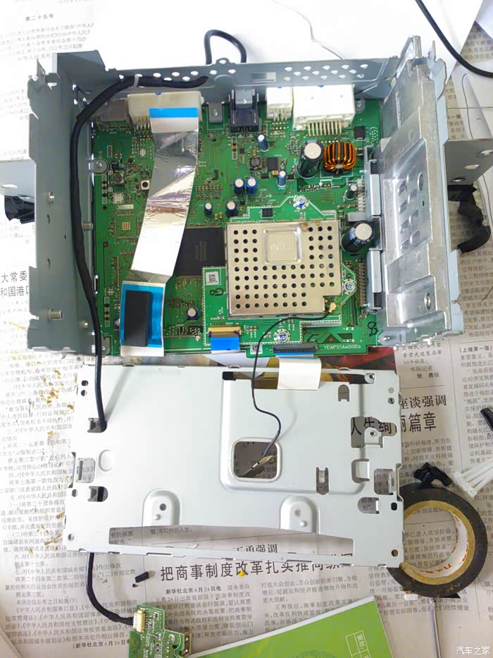 这是天籁CD的内部结构,这里我把天籁CD尾插的USB接口和逍客CD面板的USB接口无缝对接,图中的那个黑色走线就是了