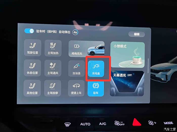 中屏左侧拉出快捷图标,点击充电盖。