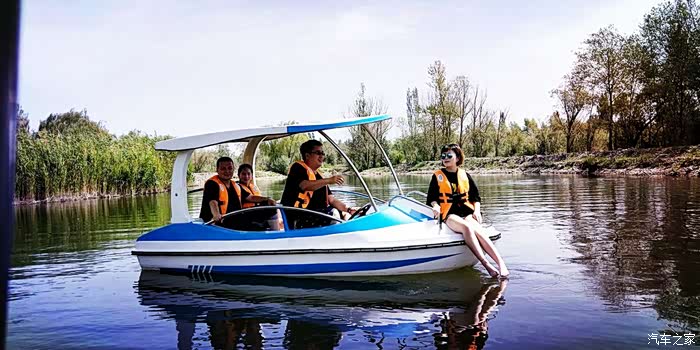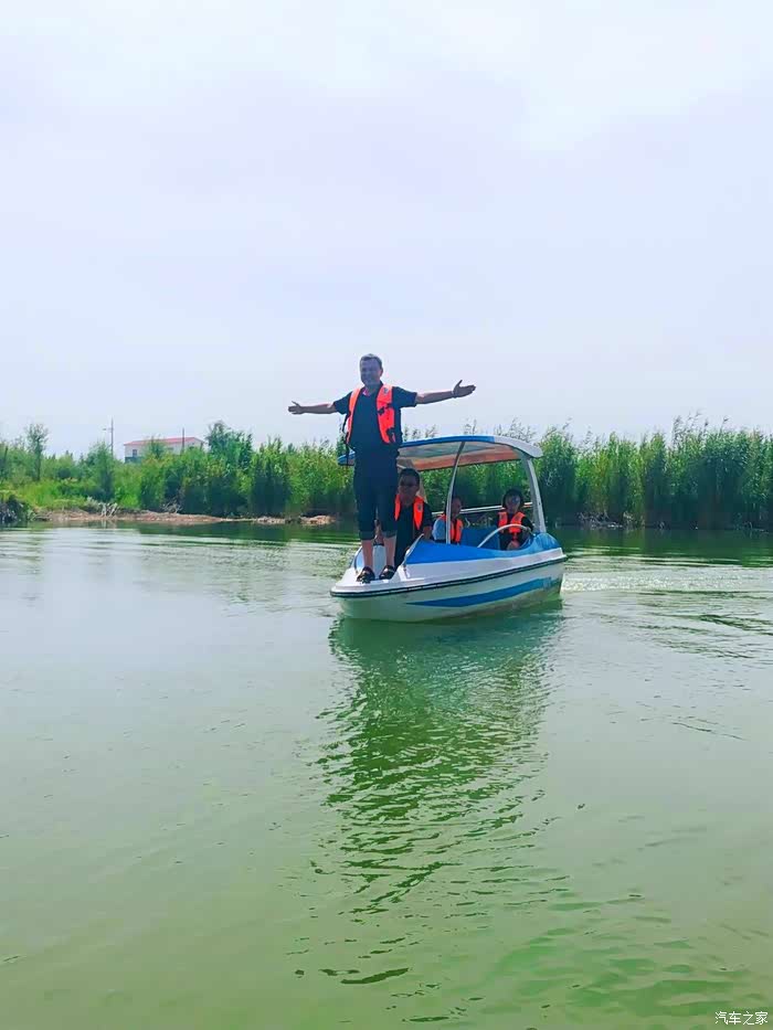 水天一色真的是美极了,开船的开船,戏水的戏水。不知道是谁带的头,竟玩起了泼水游戏,两船互泼,两败俱伤,全身都湿透了,可谓真正的”湿身“