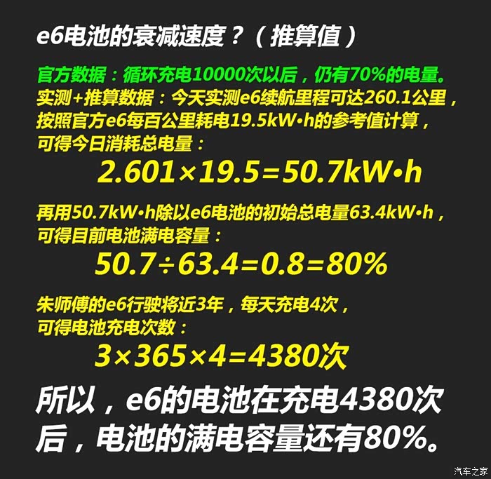 大家不担心电池衰减,请看这篇50万公里E6出租车的测评。