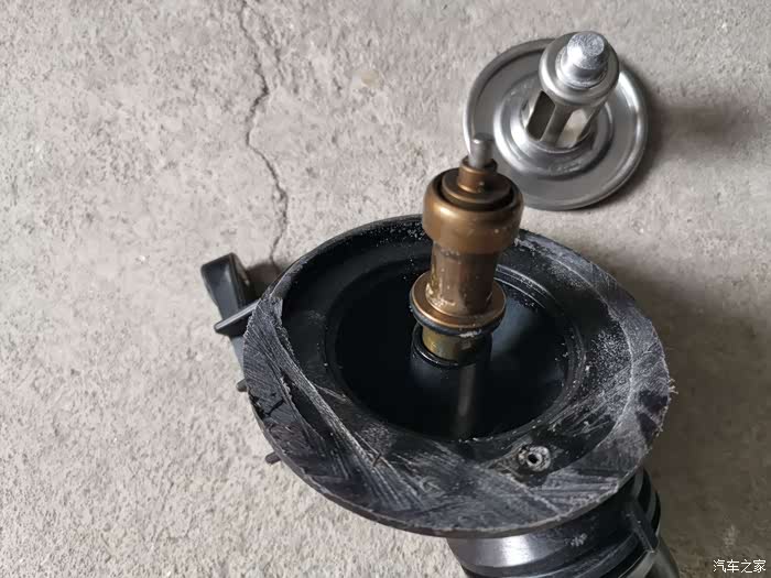 坏的节温器我带回家了,用锯条锯开一探究竟。