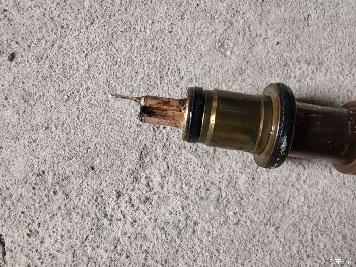 大家发现问题了吧,两道胶圈都密封失败了,防冻液渗进去了,时间一长把电加热线圈的两根电极发生电化学反应腐蚀没了一个。所以报故障码“ 节温器断路”。 报“间歇断路”的就是提醒你马上要断了.....