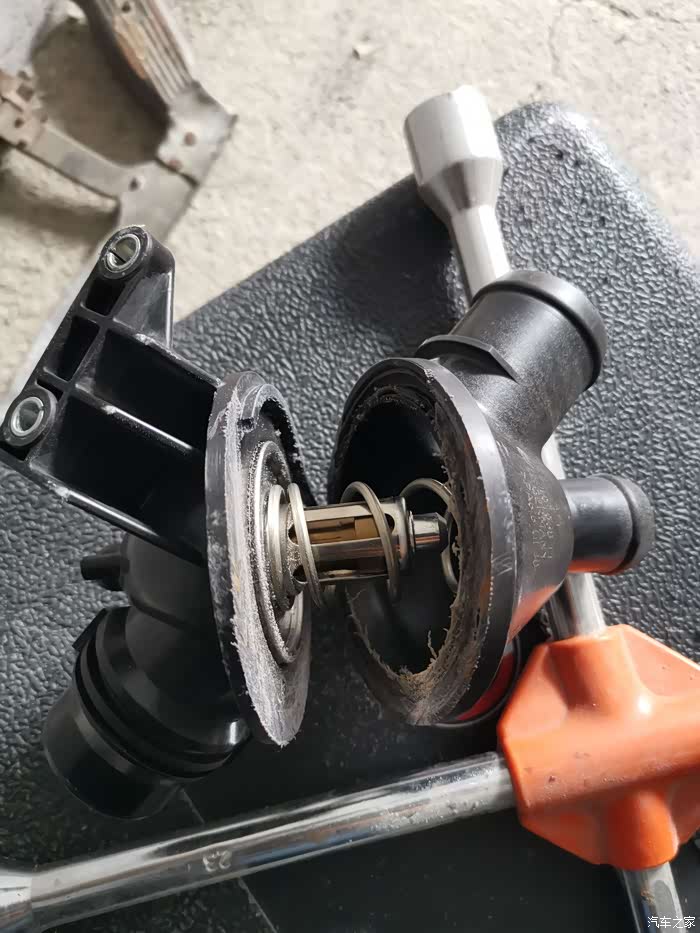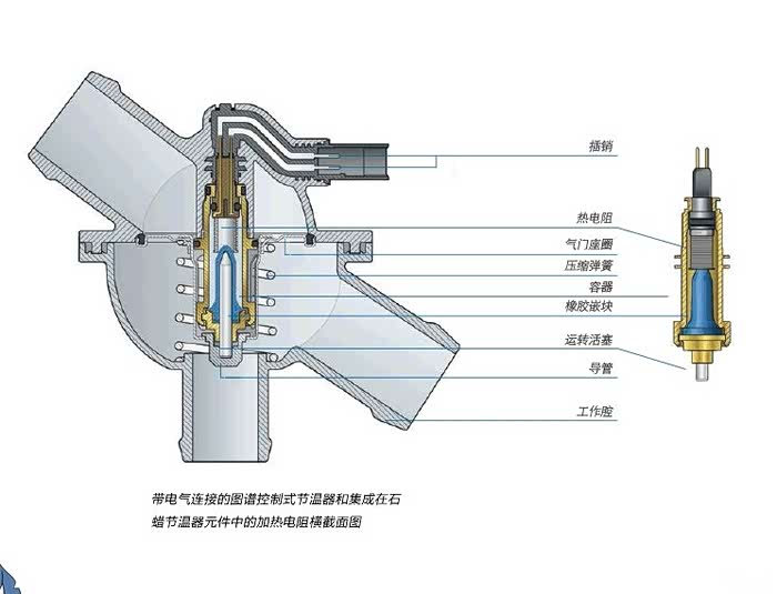 电子节温器,听着很高科技吧,其实结构很简单。和普通节温器一样就是多了个电加热。