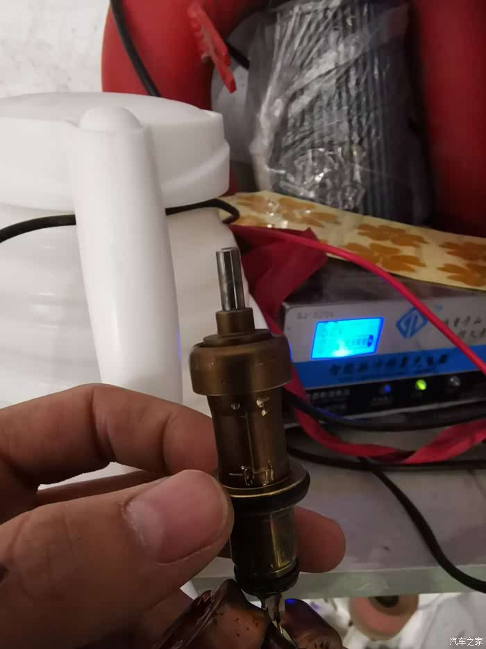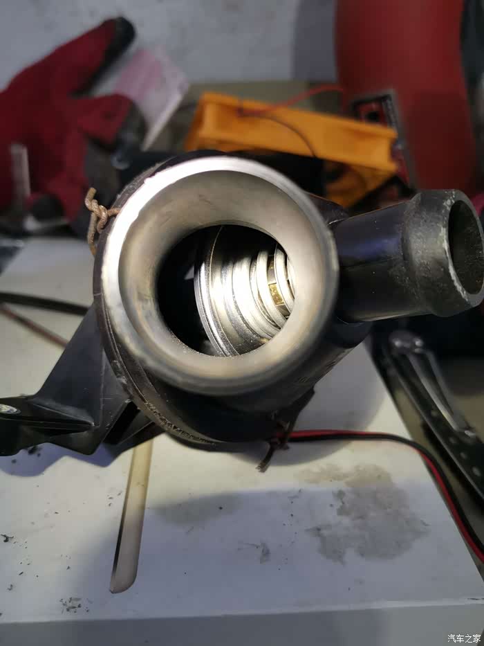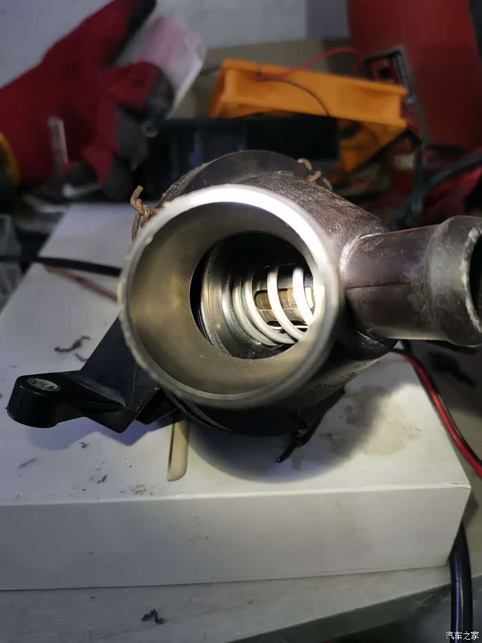 通电3分钟吧,节温器全开。 ( 话说这个石蜡融化的劲真大啊,里面那个弹簧很硬。用手使劲都压不动。)