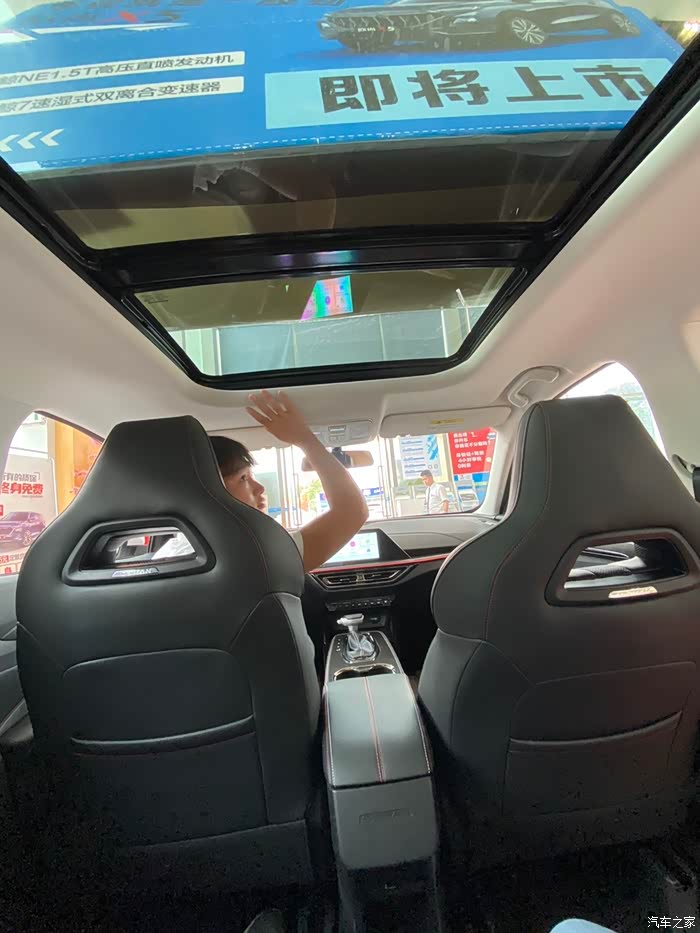 全景天窗不错,采光面积够大,坐进去不会感觉压抑。
