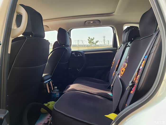 对于内饰空间来说,仿皮座椅,多功能方向盘,全景天窗,多功能主机,后排出风口,充电口,无线充电,能想到的配置都给配齐了!