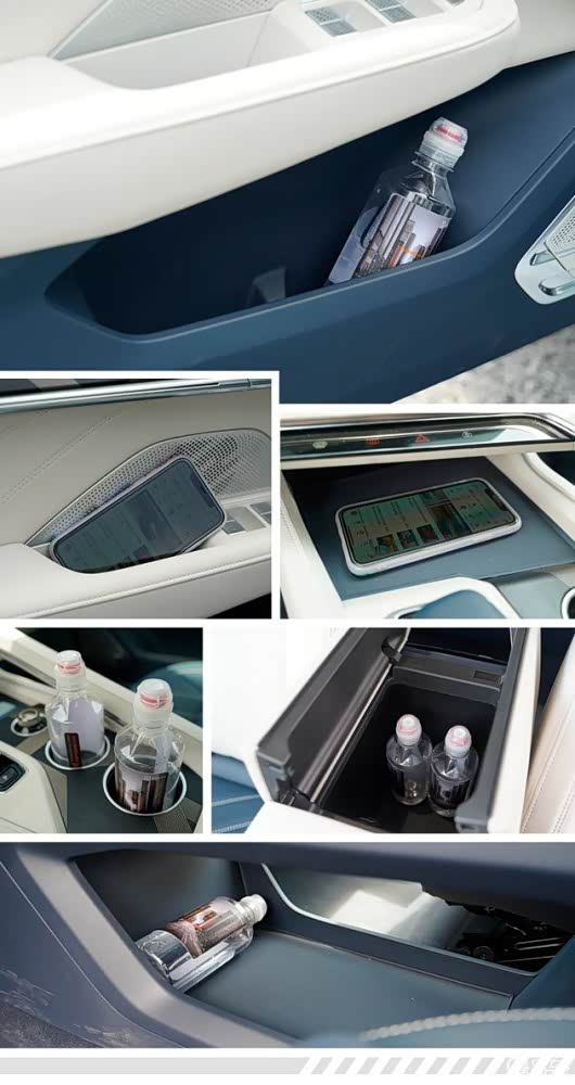 门板上的储物格可以装下1.5L的的矿泉水瓶,就算是中年人常备的枸杞保温杯也不在话下,换挡杆下面同样也有一个非常平整的小型储物空间, 像这种随手拿的空间要是放老婆的化妆包和一些常用的小物件就显得很人性化。极氪001扶手箱的深度给我的感觉就不像是一辆轿车的存在,这样的深度完全可以媲美一些中大型的SUV。