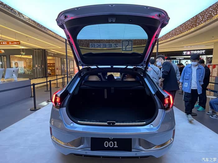 抛去这些实用的小型储物空间,这款车最让我心爱的就是它的后备箱空间了,由于极氪001采用了溜背造型,所以它的后备箱开口非常大,只要你拉的东西可以放进车里,就不用担心后备箱口开合的问题,这点相比统三厢轿车还是有非常明显的优势的。