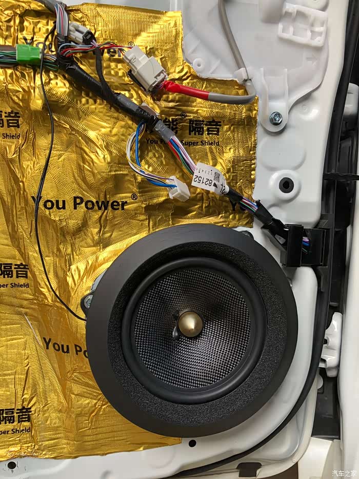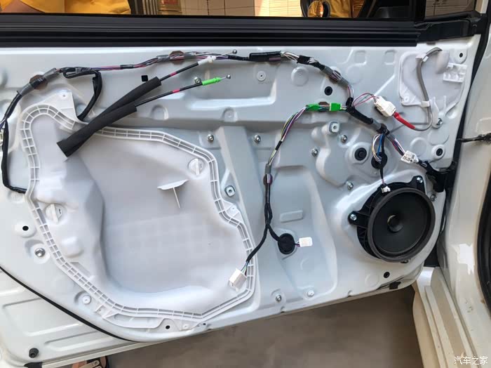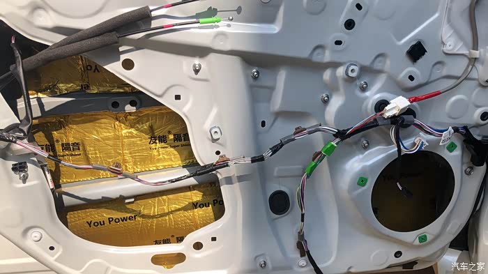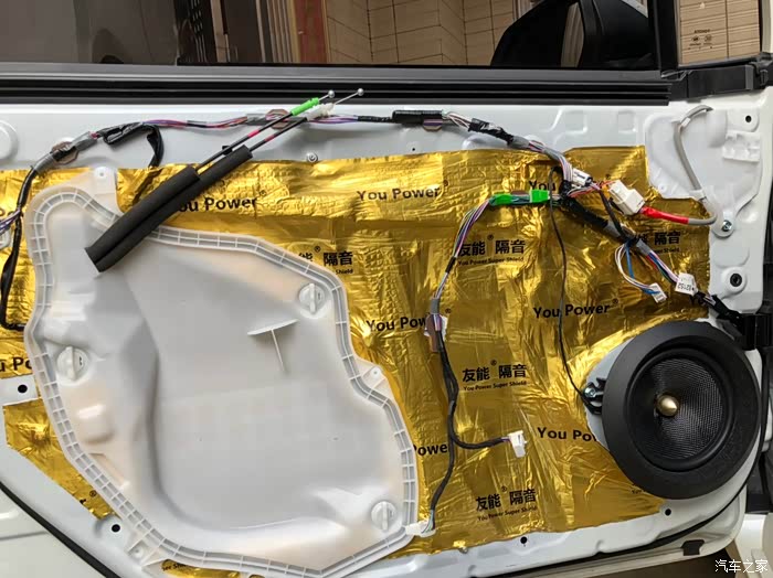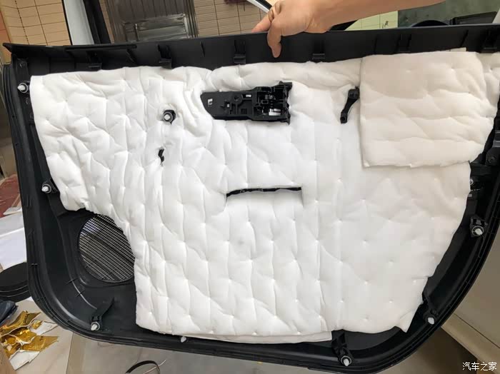 安装隔音棉,准备装回门盖,完成前门工作。副门基本一样的安装。