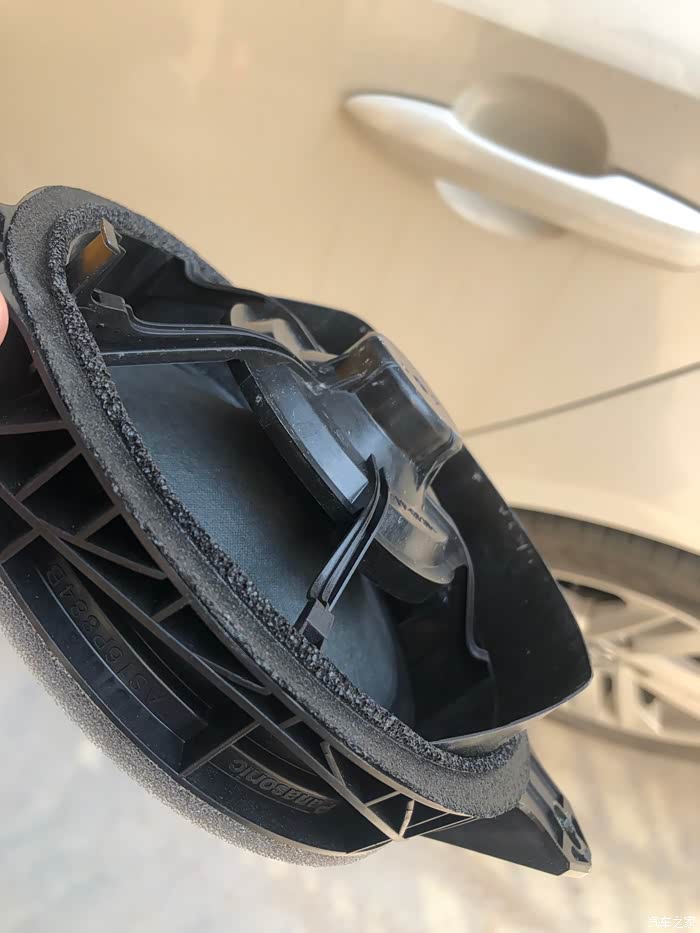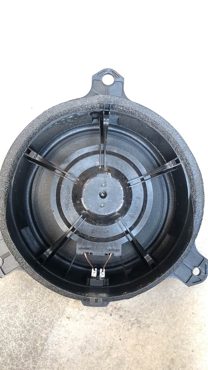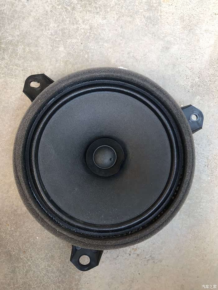原车喇叭就一个塑料圈和纸盘,磁铁都没有,非常简陋。这就是所谓的“盘纸喇叭”?难怪音效一般