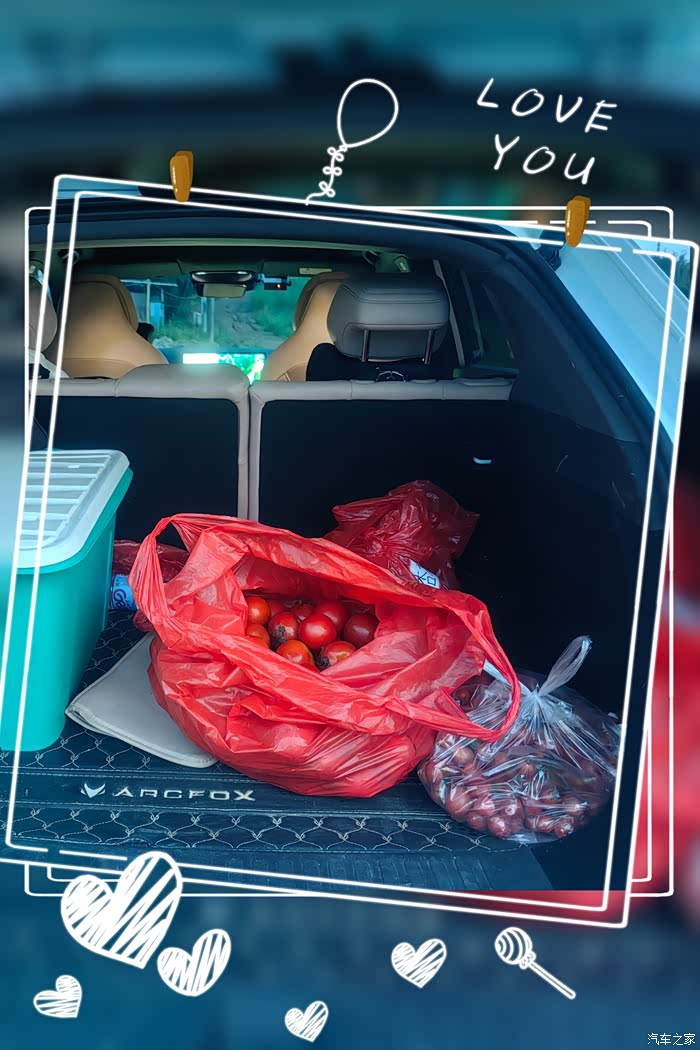 抵达番茄园,园主热情允诺“大的随意摘”。我收获二十斤大番茄、四斤小番茄,拎着沉甸甸的袋子到车尾,用感应尾门轻松打开后备箱,宽敞空间轻松装下所有“战利品”。